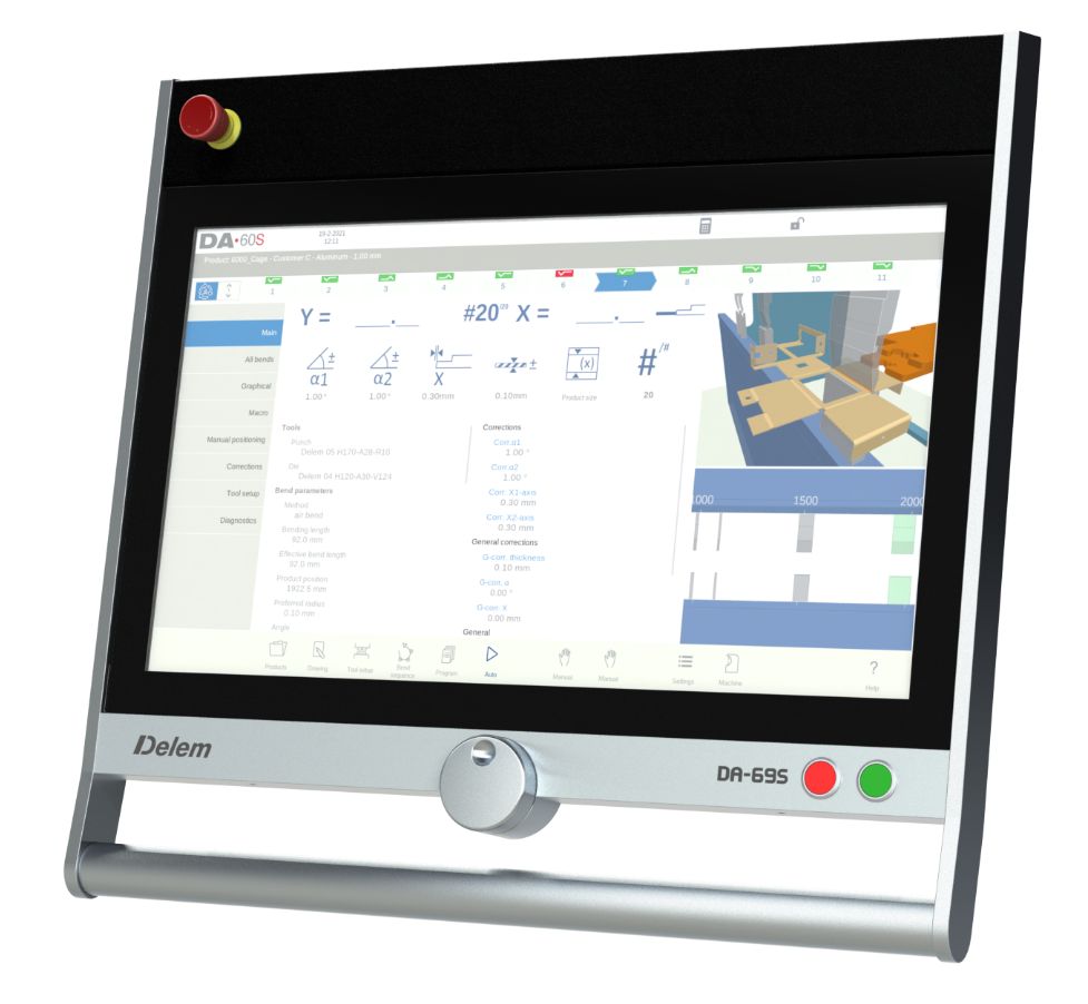 The DA-69S flagship control combines solid fundamental press brake control functionality with the latest of enhancements increasing productivity. Next to highest accuracies, ease-of-use for the operator it makes today’s press brakes more versatile than ever. Integration of machines in the manufacturing process chain is what it is all about.