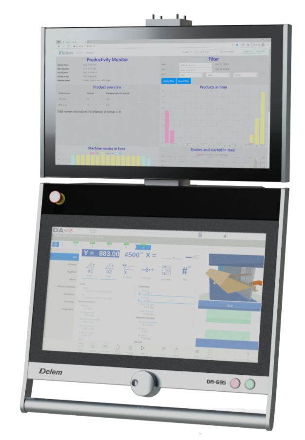 The DD-60S 2nd display for the DA-60S press brake control expands its solution with the ability to integrate additional software applications as well as it can expand the control GUI. Using ERP systems at the machine, enables the operator to see production plans, know his activity schedule and also update activities directly in the system. Next to reference lookup in e.g. PDF or even CAD/CAM systems, understanding details on the job at hand, make efficiency increase. No separate workstations near the machine and no last minute calls to preparation in order to have all set for the main task, produce the part.